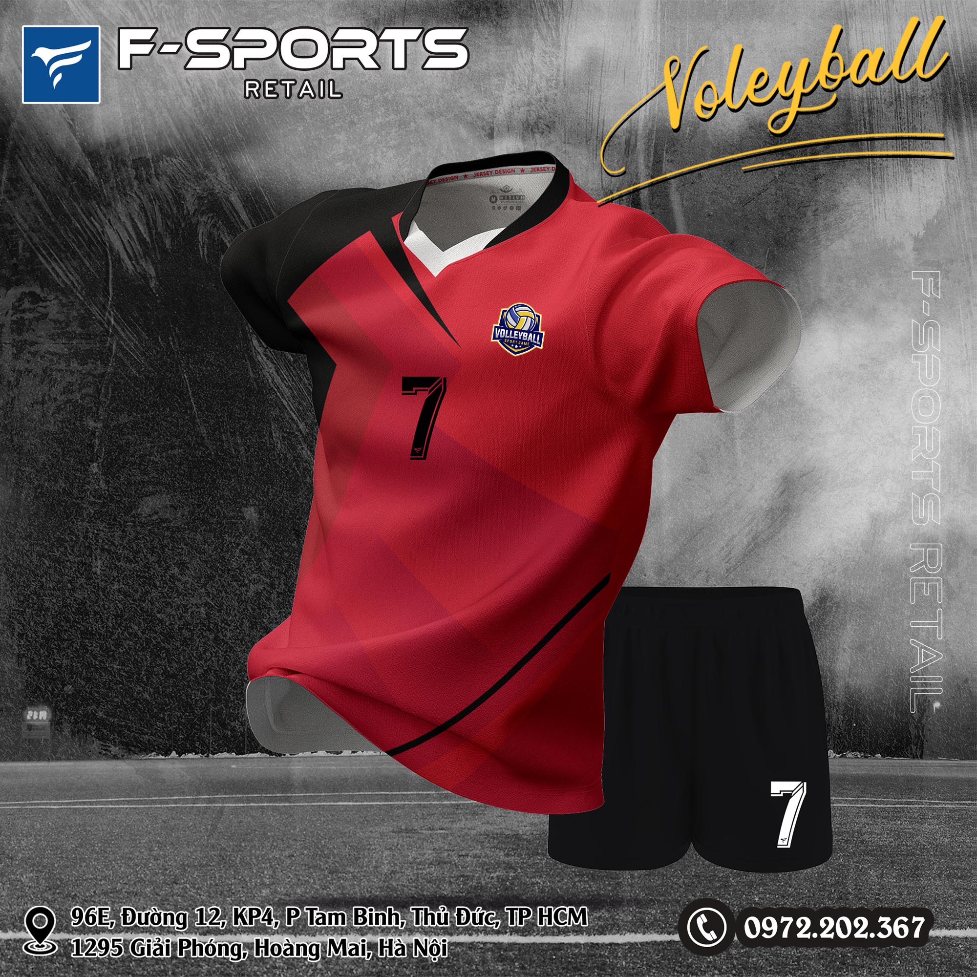 Đồng phục bóng chuyền F-Sports đỏ đen thiết kế thể thao hiện đại