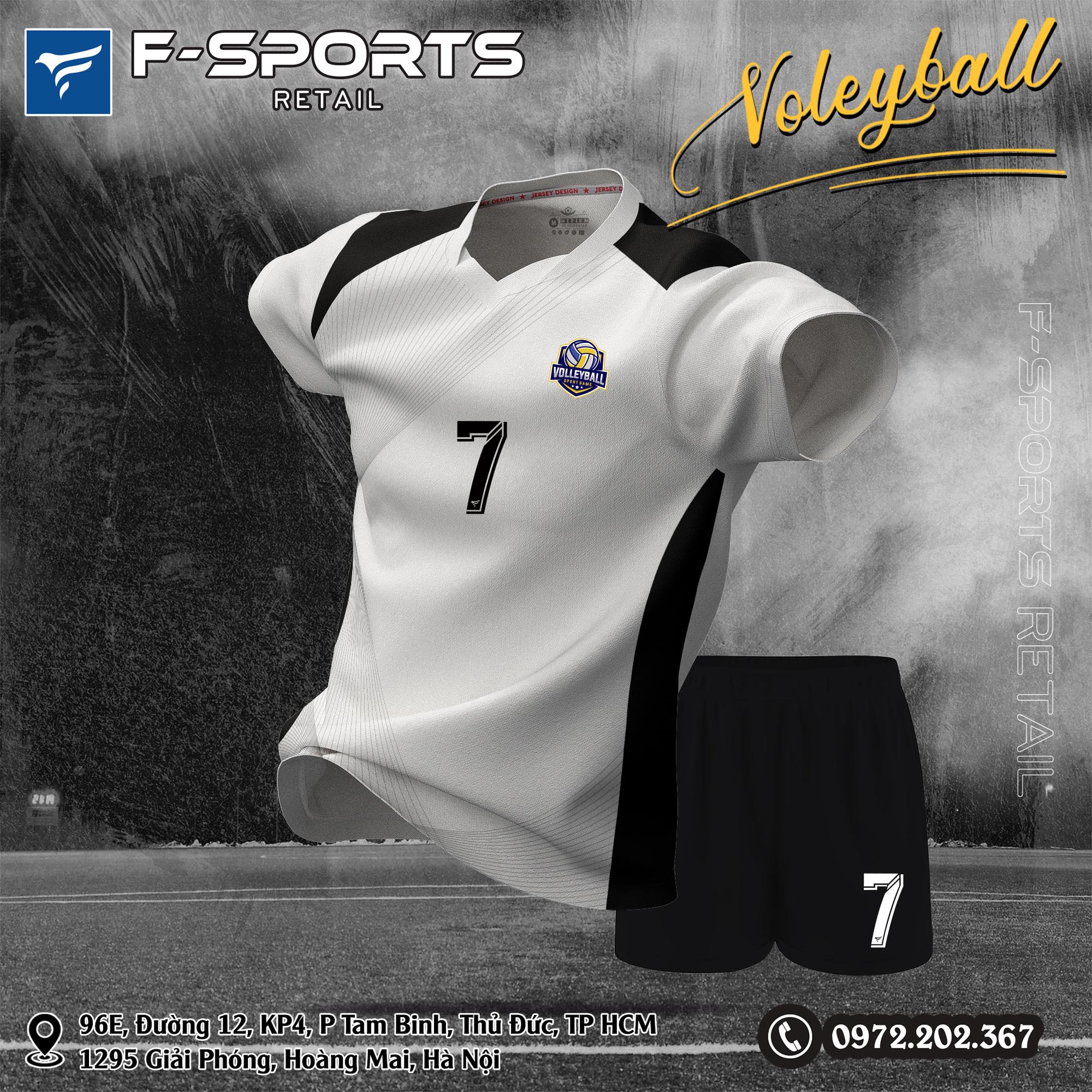 Bộ đồng phục bóng chuyền trắng đen – thiết kế khỏe khoắn, chất liệu siêu thoáng – tăng hiệu suất thi đấu, khẳng định phong cách chuyên nghiệp trên sân!